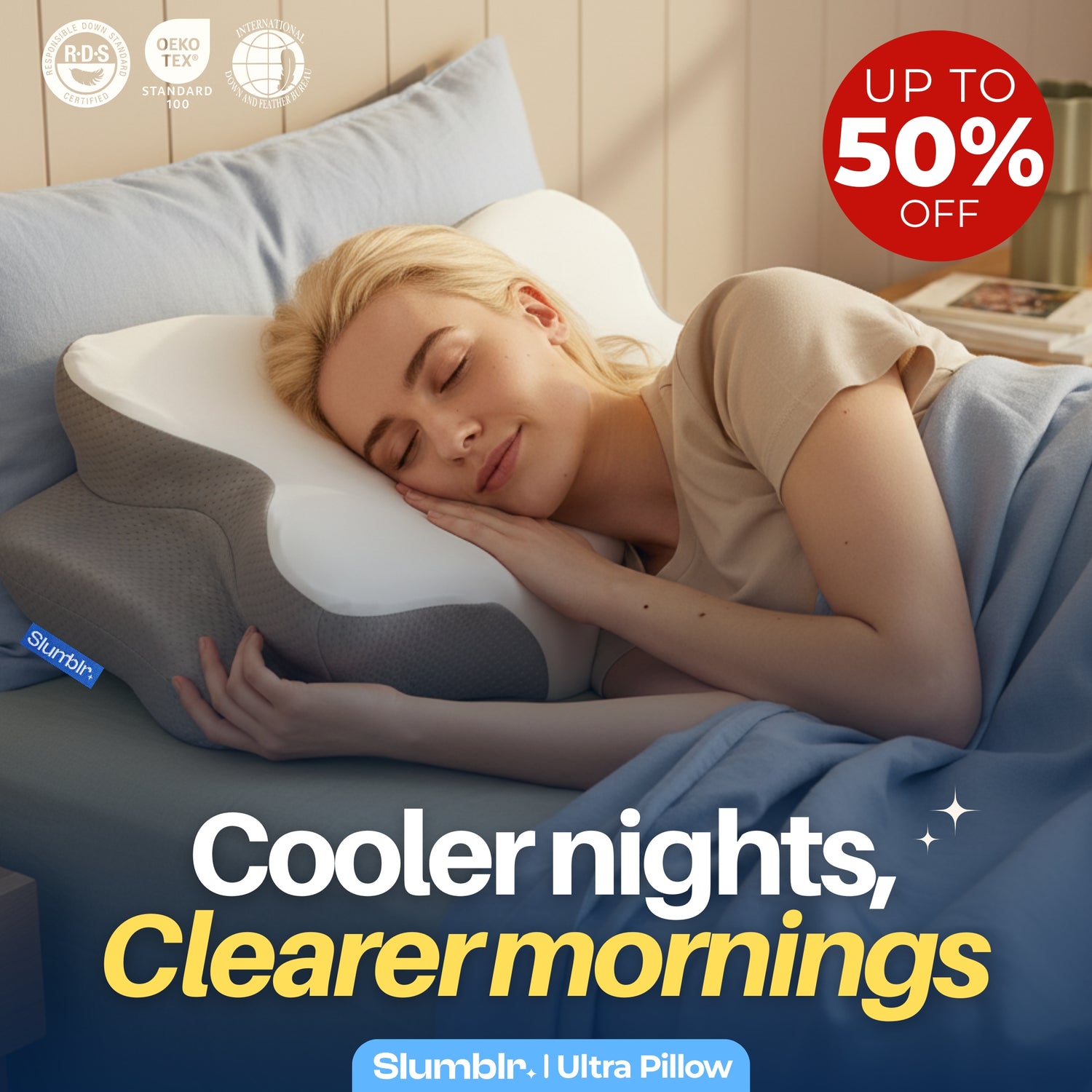 Transform your sleep experience with the Slumblr Relief Pillow and join our satisfied customers, who enjoy better sleep and improve well-being.