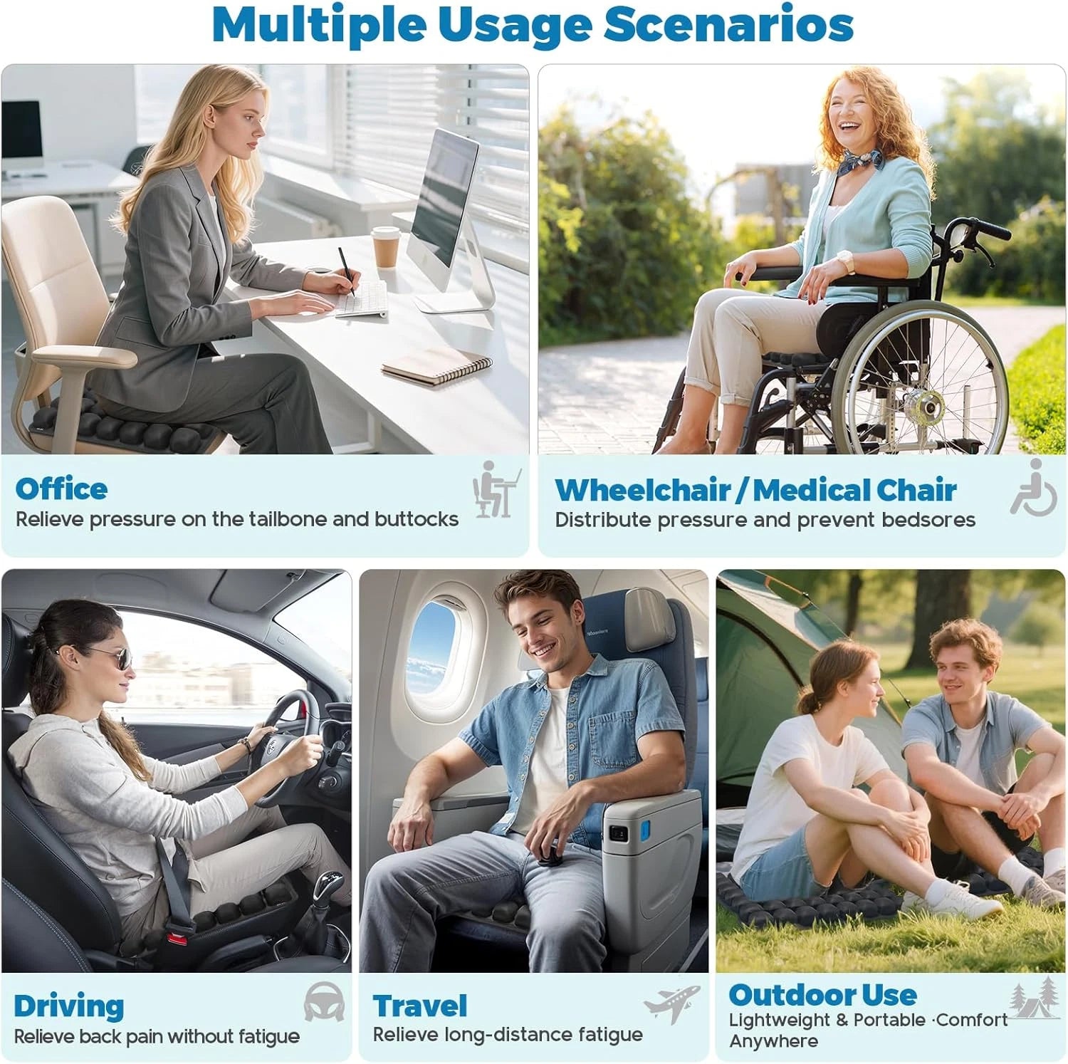 • UNCOMFORTABLE EXTENDED SITTING: Long periods of sitting during travel, commuting, or daily routines can feel tiring when seats lack airflow or adaptive cushioning for sustained comfort.